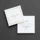 A refined square business card pairs a soft grey background with a thin, double line gold effect border that frames clean, modern typography for the company name, city, and website. The spacious layout keeps details readable and professional while the warm gold accent adds a subtle luxury touch suited to stylish brands and logos. All fonts, sizes, and colours can be customised. The gold colour is printed.