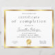 Professional Certificate of Completion in white and gold with your custom logo or business name, perfect for certificate of completion for any type of course completion such as beauty courses, professional & education courses and more! You can also use this elegant faux gold border award design for any type of accreditation. You can edit all text , add your logo and make professional diplomas for your business or organization.