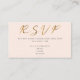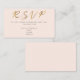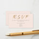 This modern RSVP enclosure card features a soft bridal pink background with a luxurious gold effect "RSVP" in elegant script, perfect for pairing with contemporary wedding suites. The minimalist layout provides clear space to include essential wedding day information such as venue, email, phone, and website on the reverse, keeping guest details organised and easy to reference. The gold appearance is printed for a refined look, and all text is fully editable to match specific plans and style.