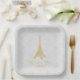 Gold Eiffel Tower Damask Wedding Shower Paper Plate