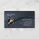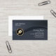 This electrician business card features black hued segments in a wave pattern as the background. An elegant gold bordered icon of an electric plug lies on the lower left side of the design. Perfect for clean, elegant, minimalist, simple, professional themes. Customise this card immediately with your name and details.