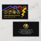 Over at the top is an array of gold electrical icons which can represent some of the services you offer. Your prestigious business name and contact details are near the base of the card.
