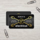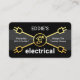 At its center point is a gold "letter-e home circuit" logo you can use. Your prestigious name is at the top with the business name "electrical" near the base of the card. Towards the left and right sides of the card are two slogan captions for you to publicize your services.