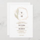 Minimalist faux gold and white wedding invitation, with your monogrammed initials framed by elegant crest and hand illustrated botanical leaves on the top, your event details are shown below in modern script and classic font. Simple and luxury. Great for modern classic wedding, simple formal wedding, elegant botanical garden wedding.