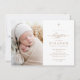 Gold Elegant Cross Calligraphy Photo Baptism Invitation features a delicate modern cross, paired with modern type and beautiful calligraphy script.