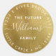 Customise this circular return address sticker in faux gold with your future family name and address in modern, elegant typography and script calligraphy. Perfect for wedding envelopes or other special and stylish occasions, favour gift bags and other giveaways.