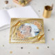 An elegant gold card with flying turnoff gold corners and gold cream roses for a chic wedding or any other event card design to personalise