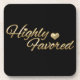 A fun and funny text based design with "Highly Favored" in a gold dimensional script with a small gold heart.