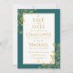 Gold Emerald Victorian Floral Lace Save the Date Invitation