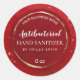 A red and gold encrusted background and a gold painted frame for homemade hand sanitizer products.