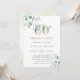 This 60th birthday party invitation features painted watercolor eucalyptus and green leaves with botanical gold numbers.