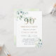 This 90th birthday party invitation features painted watercolor eucalyptus and green leaves with botanical gold numbers.