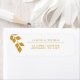 Wedding return address label featuring gold eucalyptus branch design.