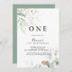 Gold Eucalyptus Calligraphy First Birthday Party Invitation