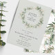 Gold Eucalyptus Wreath Green Sea Glass Wedding Invitation