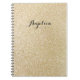 This gold faux glitter notebook with a custom name can be personalized with your text in black script typography. Note: The gold glitter effect is achieved with a printed image and is not actual glitter, metallic ink or foil.