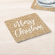 Gold Faux Glitter Merry Christmas Calligraphy Square Paper Coaster