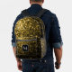 Gold faux glitter sparkles Monogram Printed Backpack. Cool fashion accessory bag for her. Beautiful girly glamourous shiny glitters sparkles design. Photo of sparkles, not real glitter! Create a unique and personalised backpack with a custom touch! Modern monogram with your initial and your name for that extra personal flair.