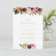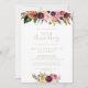 This gold feather boho floral 50th wedding anniversary invitation is perfect for a modern event. The design features hand-painted brown wild feathers, boho yellow, white, purple, pink, blush, burgundy flowers and blue berries neatly arranged into beautiful bouquets.