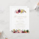 This gold feather boho tropical housewarming party invitation is perfect for a modern event. The design features hand-painted brown wild feathers, boho yellow, white, purple, pink, blush, burgundy flowers and blue berries neatly arranged into beautiful bouquets.