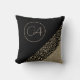 Gold Feathers on Black Monogram Modern Cushion