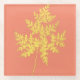 Modern botanical style coaster features gold large leaf fern silhouette on coral background