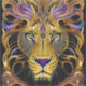 gold filigree lion head, gold and purple shades