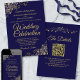 Gold Filigree on Navy Blue Elegant QR Code Wedding Invitation