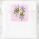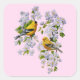 Gold Finch Birds & Apple Tree Pink Square Sticker