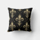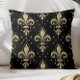Introducing our elegant pillow design, showcasing a stunning seamless pattern of gold fleur-de-lis on a sleek black background.