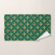 Gold fleur-de-lis seamless pattern on green bath towel set