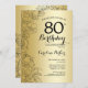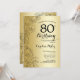 Gold Floral 80th Birthday Party Invitation. Minimalist modern design featuring botanical outline drawings accents and typography script font. Simple trendy invite card perfect for a stylish female bday celebration. Can be customised to any age. Printed Zazzle invitations or instant download digital printable template.