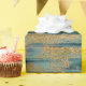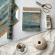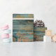 A distressed gold flower stencil-like pattern overlays a background of blue/green rustic wood. Perfect for decoupage art, paper crafts, or gift wrapping. Please see the "seam" image preview to make sure it is acceptable.