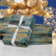Gold Floral and Blue Rustic Wood Wrapping Paper