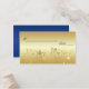 This gold floral and royal blue place card matches the wedding invitation and other items shown below.