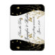 This modern design called, Gold Floral Curved Wedding, is beautiful and will set a very glamourous mood for your wedding. This design has a black curved border to either side with white in the centre for your text. There are gold floral accents on each side. This set has invitations, save the date cards, response cards, thank you cards, table number tent cards, envelope seals, wine labels, binders, return address labels and many more day-of wedding stationery pieces, favours, and gifts available. Use the envelope seal stickers for any of your DIY gifts - these are available in both large and small sizes! All elements are printed on our high quality products, they do not include any real gold, jewels, embossing, or other textile elements. All designs are copyright Noteable Expressions, Inc. All rights reserved.