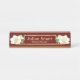 This design features a gold edge floral graphic and frame with the flowers in white with a green leaf. Impress colleagues and visitors with this stylish nameplate when they see it sitting on your desk