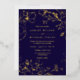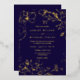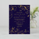 Gold Floral Elegant Navy Blue Modern Wedding Real Gold Foil Invitation