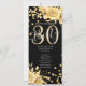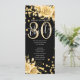 Elegant Glam Gold Floral Glitter 30th Birthday Script template featuring party program text, flower arrangements, glitter confetti and modern typography script.