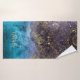 Modern, whimsical, tribal mehndi style, henna Indian floral faux gold metallic effect mandala, geometric, circle of flowers, shapes, lines, stripes, triangles, dots, girly, ultra violet and light, dark, peacock blue, teal gradient, watercolor stained paint cloudy, nebula, stars, glowing dots galaxy background. Stylish, luxurious, Boho chic design, dreamy feels artwork. This simple, trendy artistic image is perfect for everyday wear, or special occasions.