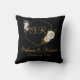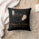 Gold floral on black monogram wedding gift throw pillow. Great gift for newly weds. Easy to customise bride groom names, initials and wedding date. Get yours today!