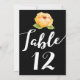 Simple, yet elegant gold colour flower with green leaves on black table number card with white typography. See more at Heart Song Notes here at Zazzle.