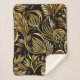Gold Floral Pattern On Black Sherpa Blanket