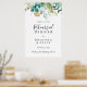 This gold floral tropical rehearsal dinner welcome sign is perfect for a modern wedding rehearsal. The design features predominantly hand-painted watercolor green foliage coupled with gold flowers.