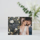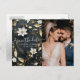 Modern Vintage Elegant Wedding Save the Date Photo Postcard Template - Elegant Black White and Gold Floral Wreath.