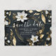 Modern Vintage Elegant Wedding Save the Date Photo Postcard Template - Elegant Black White and Gold Floral Wreath.