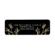 Add a stylish holiday address label to your greeting card envelopes this Christmas season. The modern holiday address labels feature faux gold flourishes, a black background, and placeholders for your custom text.