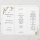 White tri-fold wedding program with gold leafy flourish. Customise with black text in three sections, which will be the front, order of ceremony, and wedding party sections. Then fold accordion style / z-fold / tri-fold, after purchase. Please NOTE: Changing the paper type may make this difficult to fold.