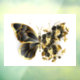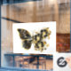 Gold flower butterfly with black jewellery orchid, decorated with gold leaves on white background.