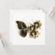 Gold flower butterfly with black jewellery orchid, decorated with gold leaves on white background.